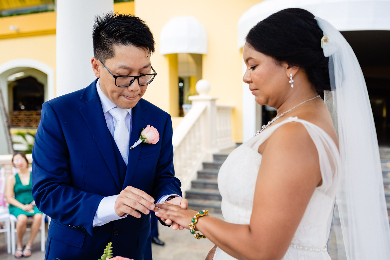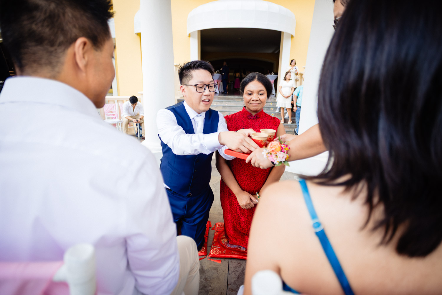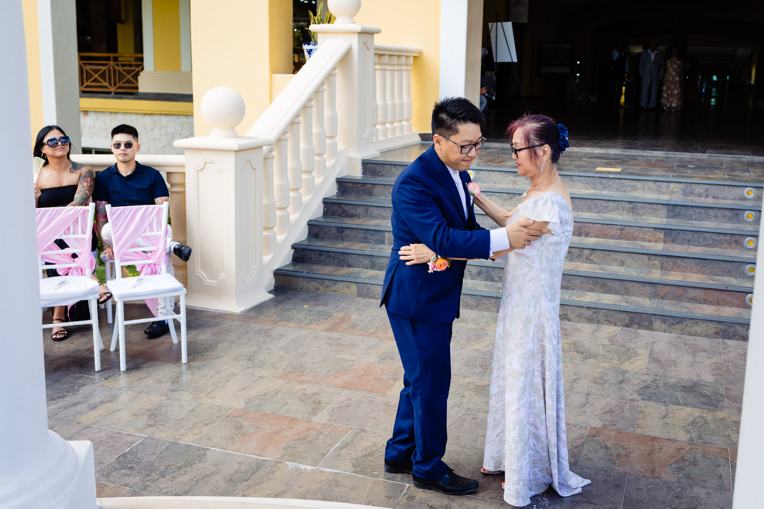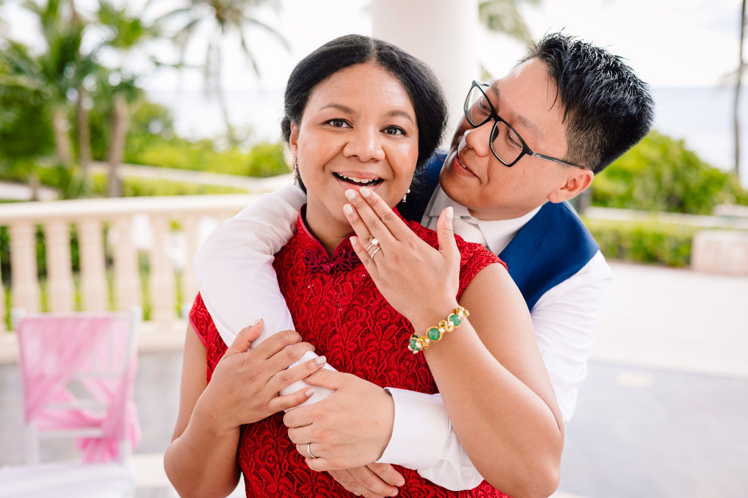 One of the most special moments of the day was their Chinese tea ceremony during cocktail hour. This beautiful tradition symbolizes respect, gratitude, and unity between families. It added a deeply emotional and cultural touch to their Barcelo Maya Palace wedding and created unforgettable moments for everyone present.