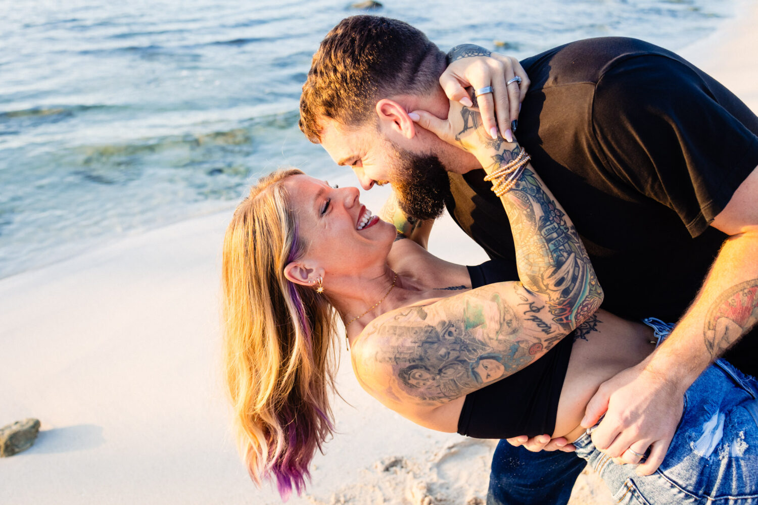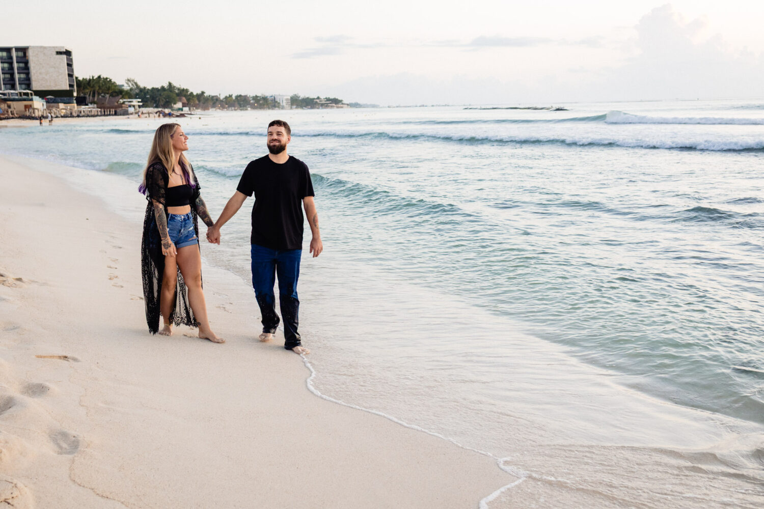 Their couple photoshoot in Playa del Carmen was relaxed, fun, and full of laughter. We walked along the beach at sunrise, feeling the ocean breeze and the warmth of the Caribbean sun. The photos reflect their genuine connection and the way they enjoy life together — two souls perfectly in sync, simply celebrating love and freedom by the sea.