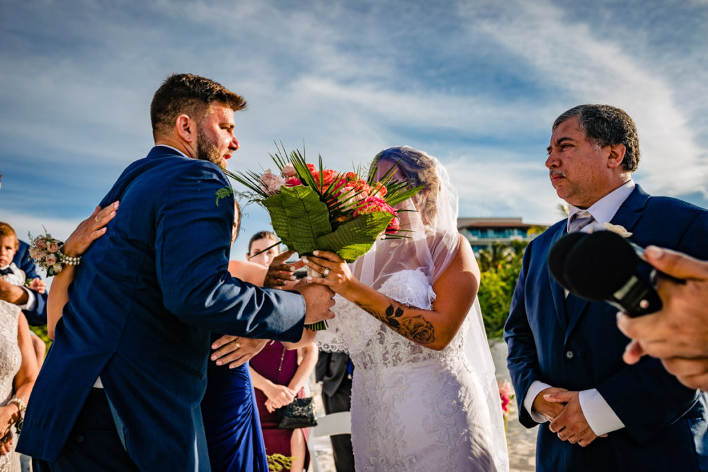Dreams Playa Mujeres Wedding Photographer. Dianna and Eric, are nice newly weds deeply in love from Delaware U.S. They have been together since six years ago. Right now they are very happy with their baby daughter. They love to travel to beaches every vacation. Dianna is Mexican origin, she always wanted a beach wedding in Mexico. They found me because I was the wedding photographer of one Eric’s friend. After watching others photographers they liked my style based in moments. The wedding venue is one of newest resorts at Playa Mujeres, The four-diamond Dreams Playa Mujeres Golf & Spa Resort hotel of the triple AAA is located on a stretch of private beach in a serene gated community, just 16 km north of downtown Cancun. Also this resort is very good to for families with kids. Elvis Aceff Dreams Playa Mujeres Wedding Photographer available for couples in love.