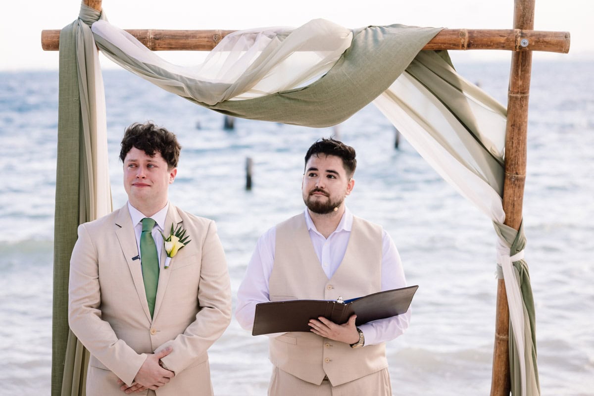 Isla Mujeres Mexico beach wedding ceremony emotional moment