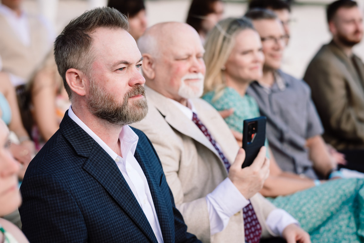 Nicole looked stunning walking down the beach, while Parker’s expression reflected pure emotion. Because of the intimate setting, the ceremony felt relaxed and filled with genuine moments shared with family and friends.