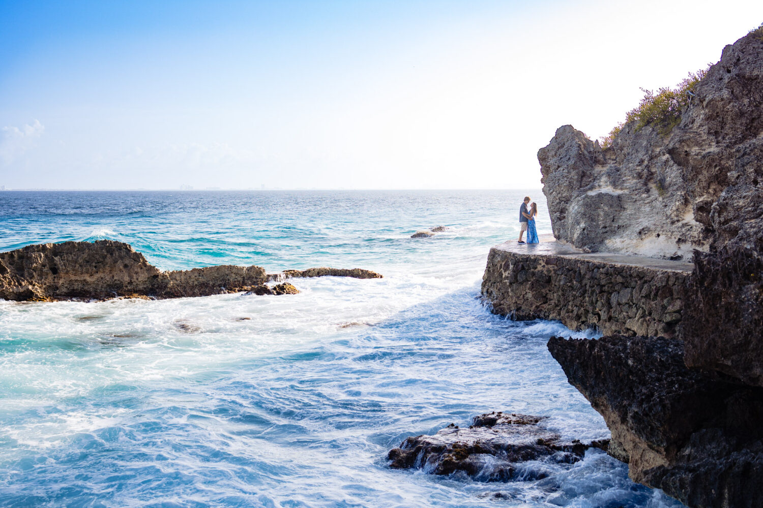 Located just a short ferry ride from Cancun, Isla Mujeres offers a peaceful, intimate atmosphere away from the crowds. Whether you dream of proposing barefoot on the beach, at the dramatic cliffs of Punta Sur, or during a romantic dinner at sunset, this island is pure magic.