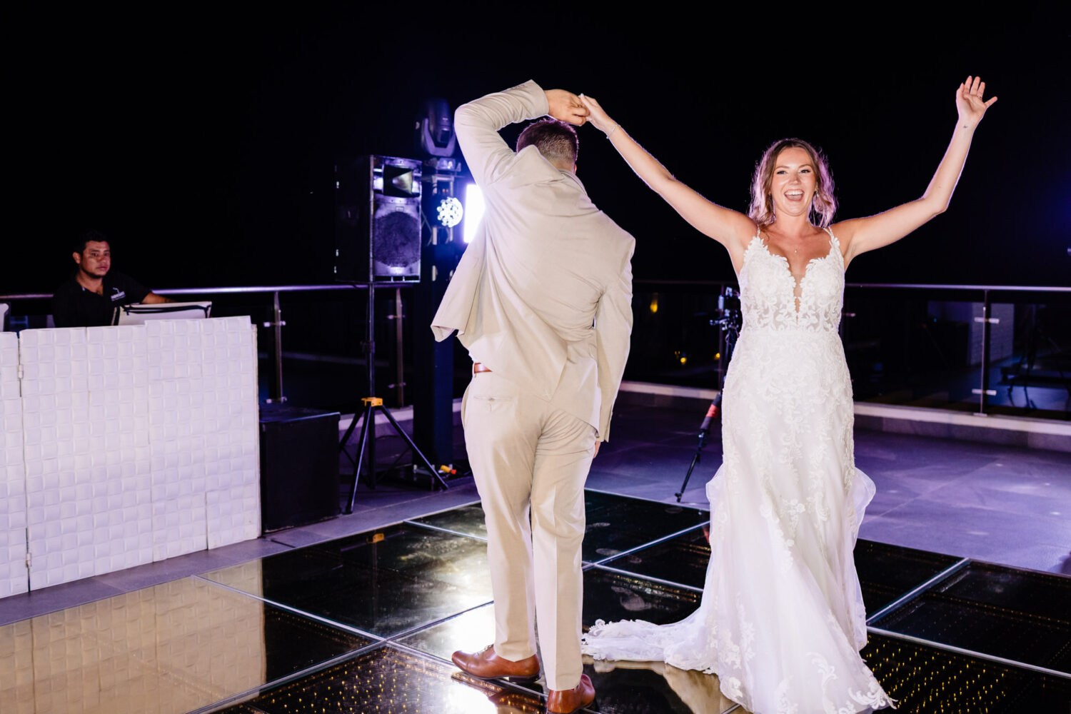 The reception was held on the hotel’s rooftop, offering stunning views of the Riviera Maya as the sun dipped toward the horizon. Abby and Nick danced the night away surrounded by their closest friends and family, laughing, cheering, and celebrating every moment. The DJ kept the energy high, and the dance floor was alive with fun, playful moments, and unforgettable memories. To top off the night, guests were amazed by a spectacular fire show with dancers, adding an extra wow factor to the celebration. From heartfelt toasts to spontaneous dance-offs, the rooftop became the perfect stage for an incredible, joy-filled celebration that truly reflected the couple’s vibrant personalities. If you’re planning your destination wedding in the Riviera Maya, Margaritaville is truly a gem. And if you’re searching for a wedding photographer who knows this resort and the best photo spots, I’d love to help you capture your story beautifully. Congratulations for my new friends Abby and Nick. Margaritaville Island Reserve Riviera Maya Wedding Photographer