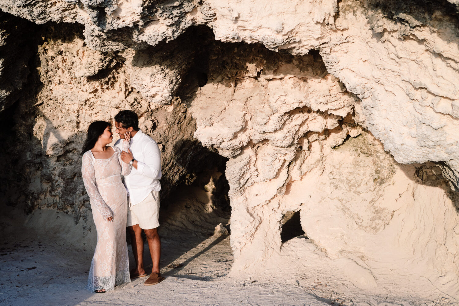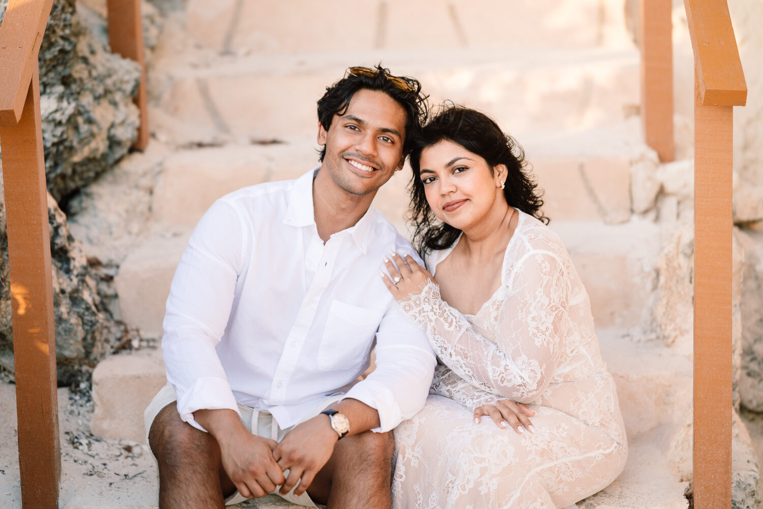 Tausif and Maliha traveled from New York to plan a proposal in Isla Mujeres, choosing Punta Sur for a natural and unforgettable moment.