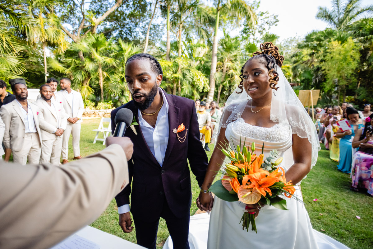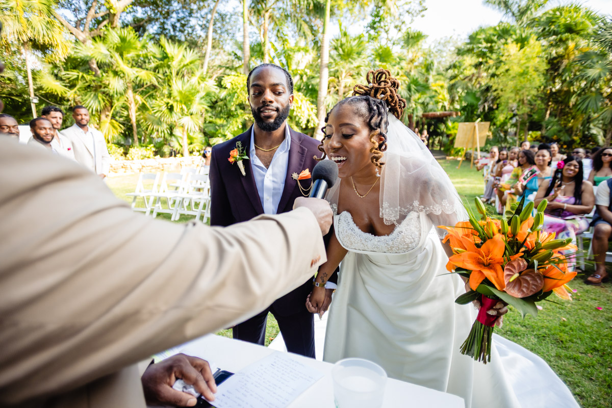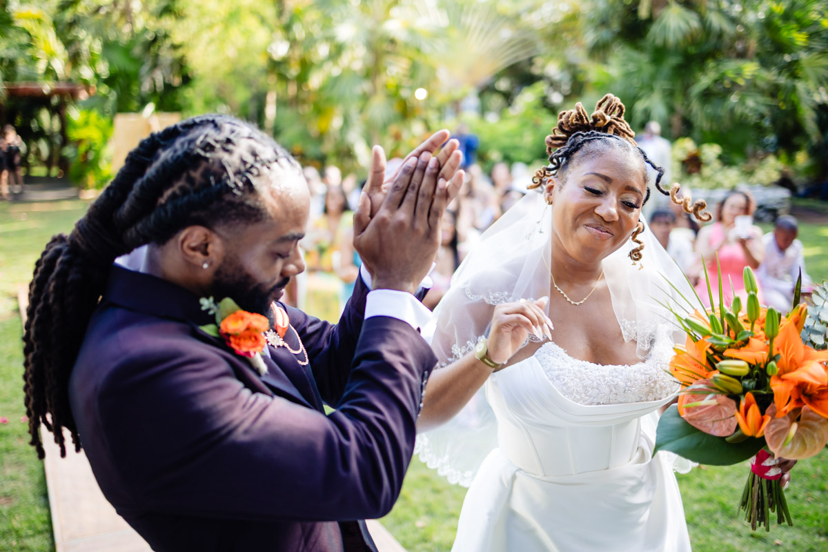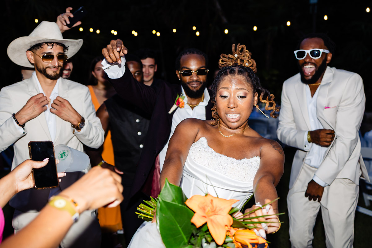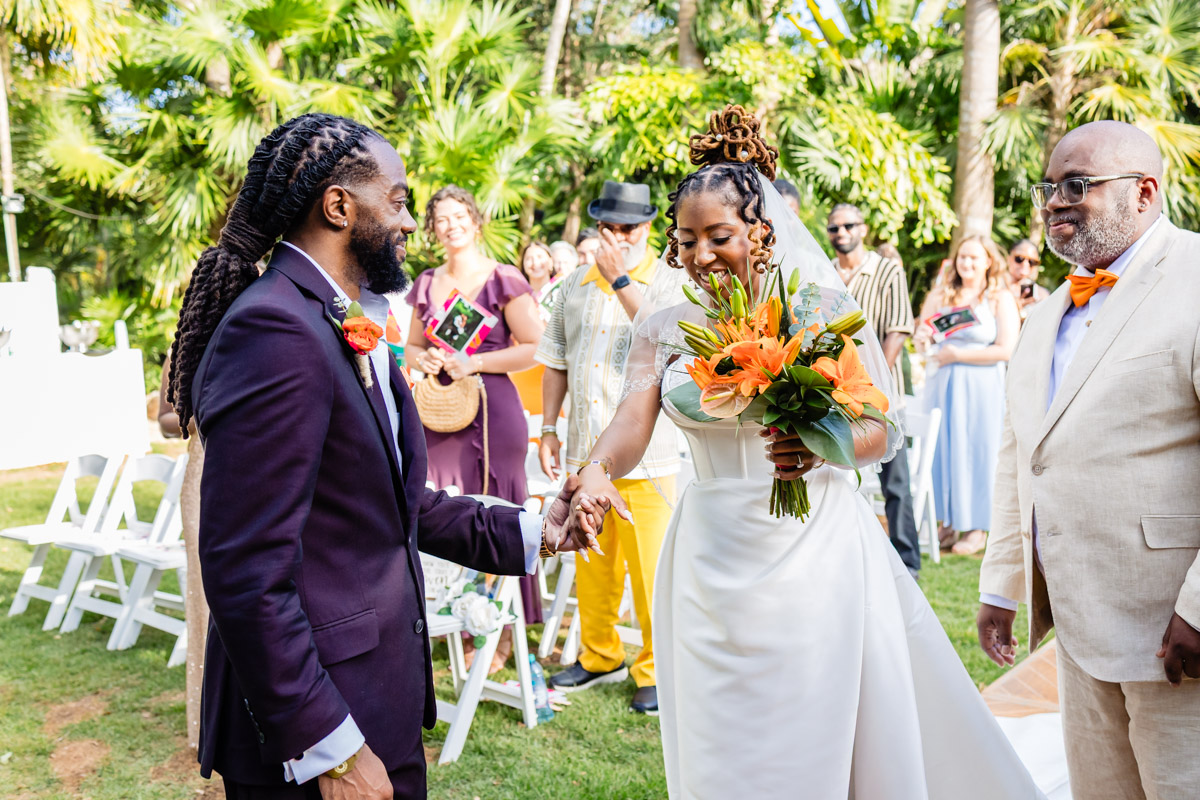 One of the most touching parts of the ceremony? It was officiated by Corbin’s father, making it deeply personal and emotional. From start to finish, you could feel the love flowing through every moment — and it all took place in the tropical, serene garden area just steps away from the Caribbean Sea.