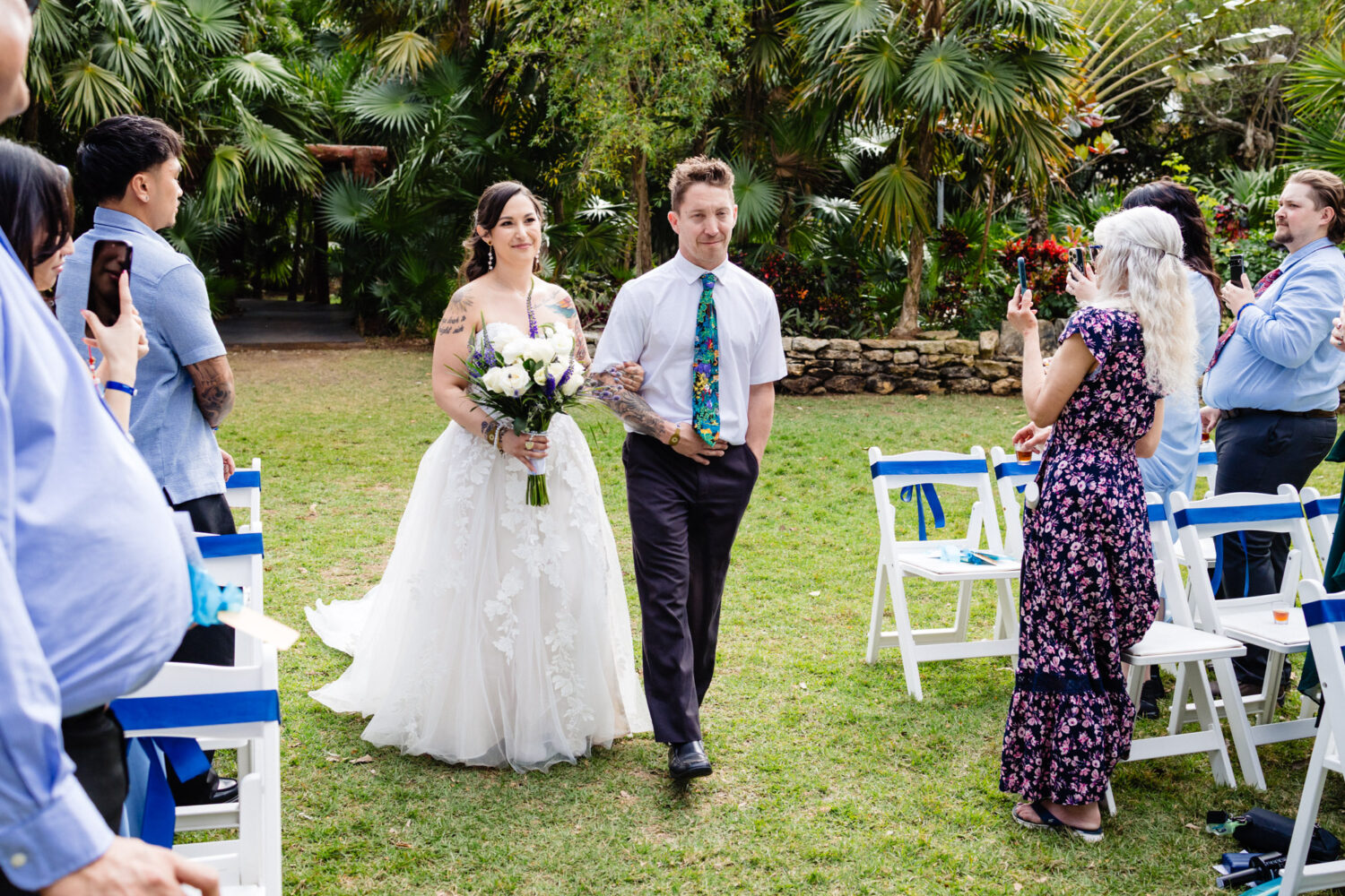 The wedding ceremony took place in the lush garden area of the resort, creating an intimate atmosphere surrounded by tropical greenery. As Cassandra walked down the aisle, the excitement and emotion from both families was impossible to miss.