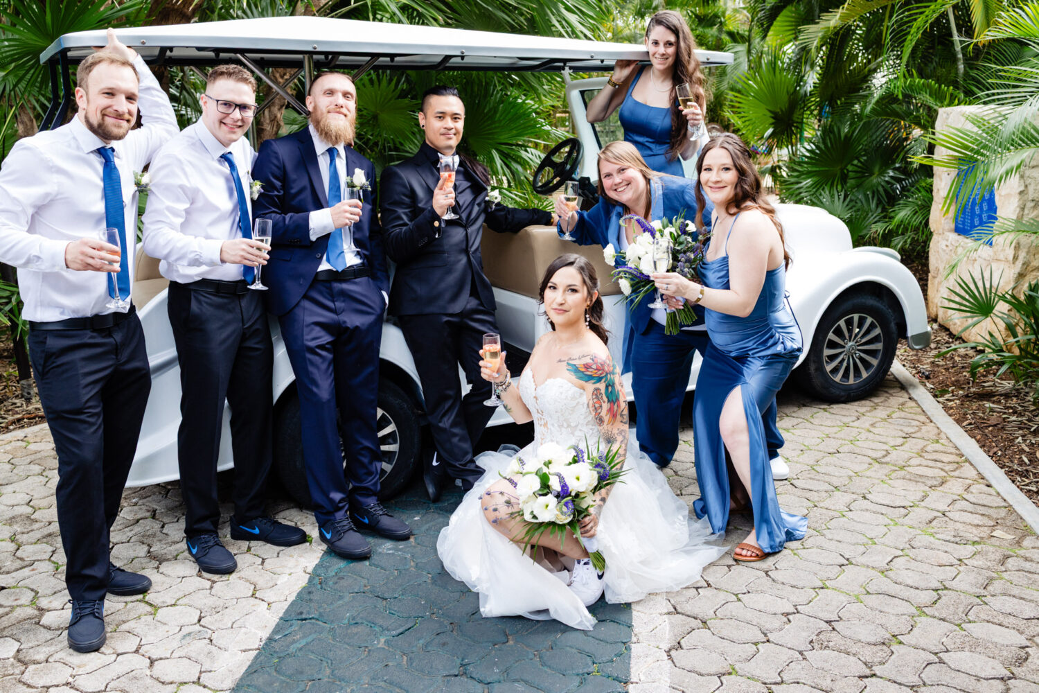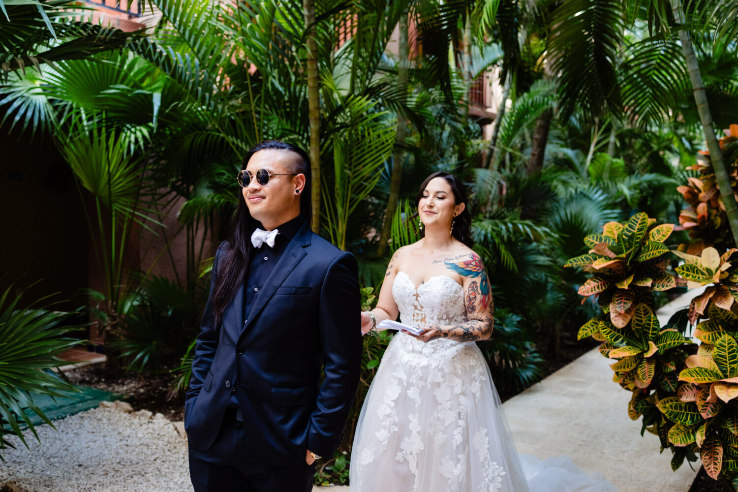 Sandos Playacar Wedding in Playa del Carmen. Their ceremony took place in the garden, where emotions ran high as Cassandra and Aaron exchanged vows. It was one of those moments where you could truly feel how much the people around them cared—there were smiles, laughter, and definitely a few happy tears during the ceremony and heartfelt speeches that followed.